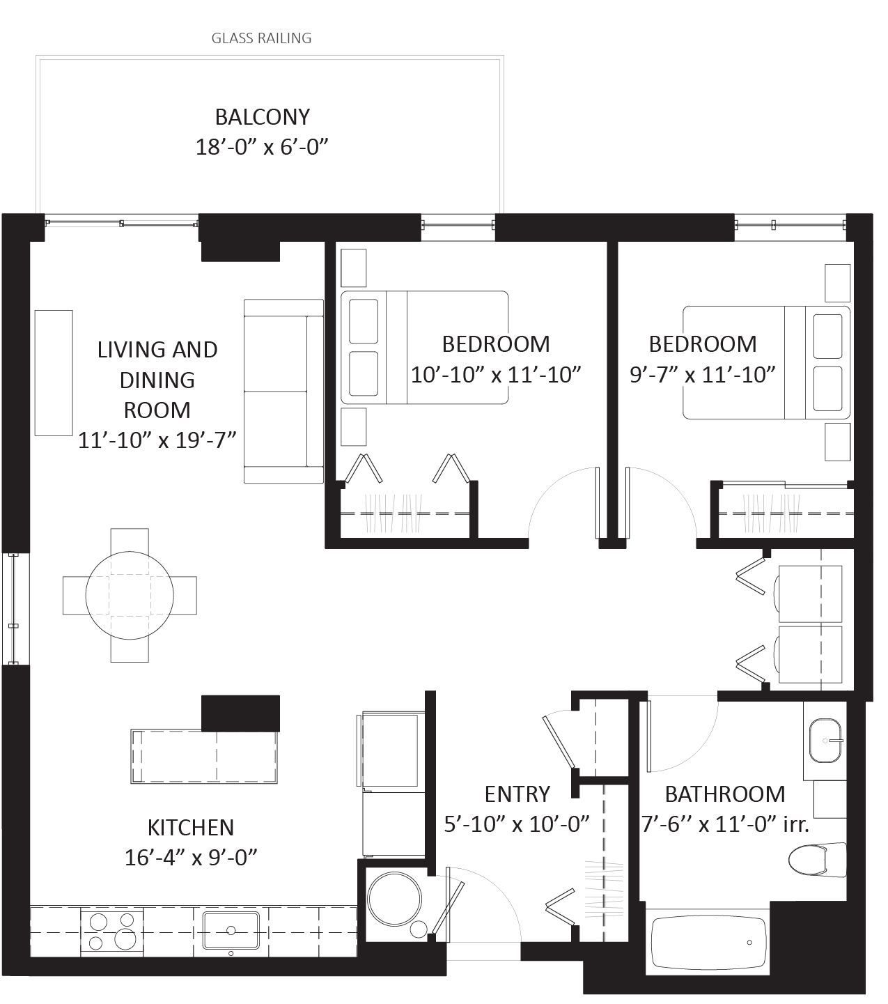 Unit B4 stands out for its exceptional size, offering an impressive living area of approximately 1,023 sq. ft. It is one of the largest options in the project, perfect for those who refuse to compromise on space and sophistication. Spanning multiple levels, from the 1st to the 6th floor, this unit features a fluid layout enhanced by ceilings reaching up to 10’-3" in height. The expansive living area extends to a private 108 sq. ft. balcony with glass railings, ideal for enjoying natural light and outdoor views. The chef-worthy kitchen is equipped with quartz countertops, soft-close cabinetry, and six brand-new stainless steel appliances. Between the elegant bathroom with ceramic flooring and the comfort provided by individual air conditioning, Unit B4 is a true sanctuary of modern living. *Electricity, cable, telephone, and internet fees are the responsibility of the tenant.