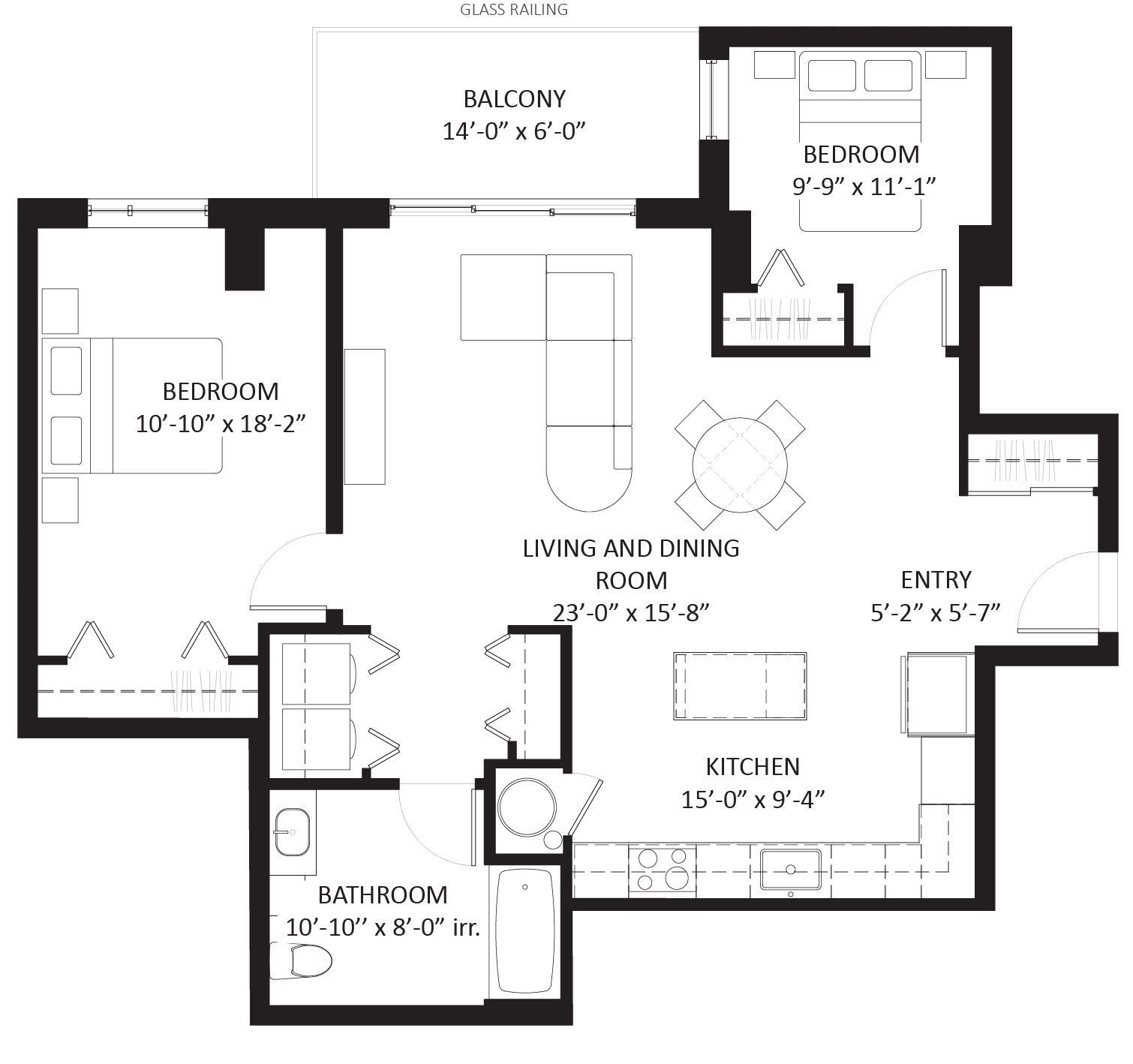 +/- 998 sqft + balcony 84 sqft