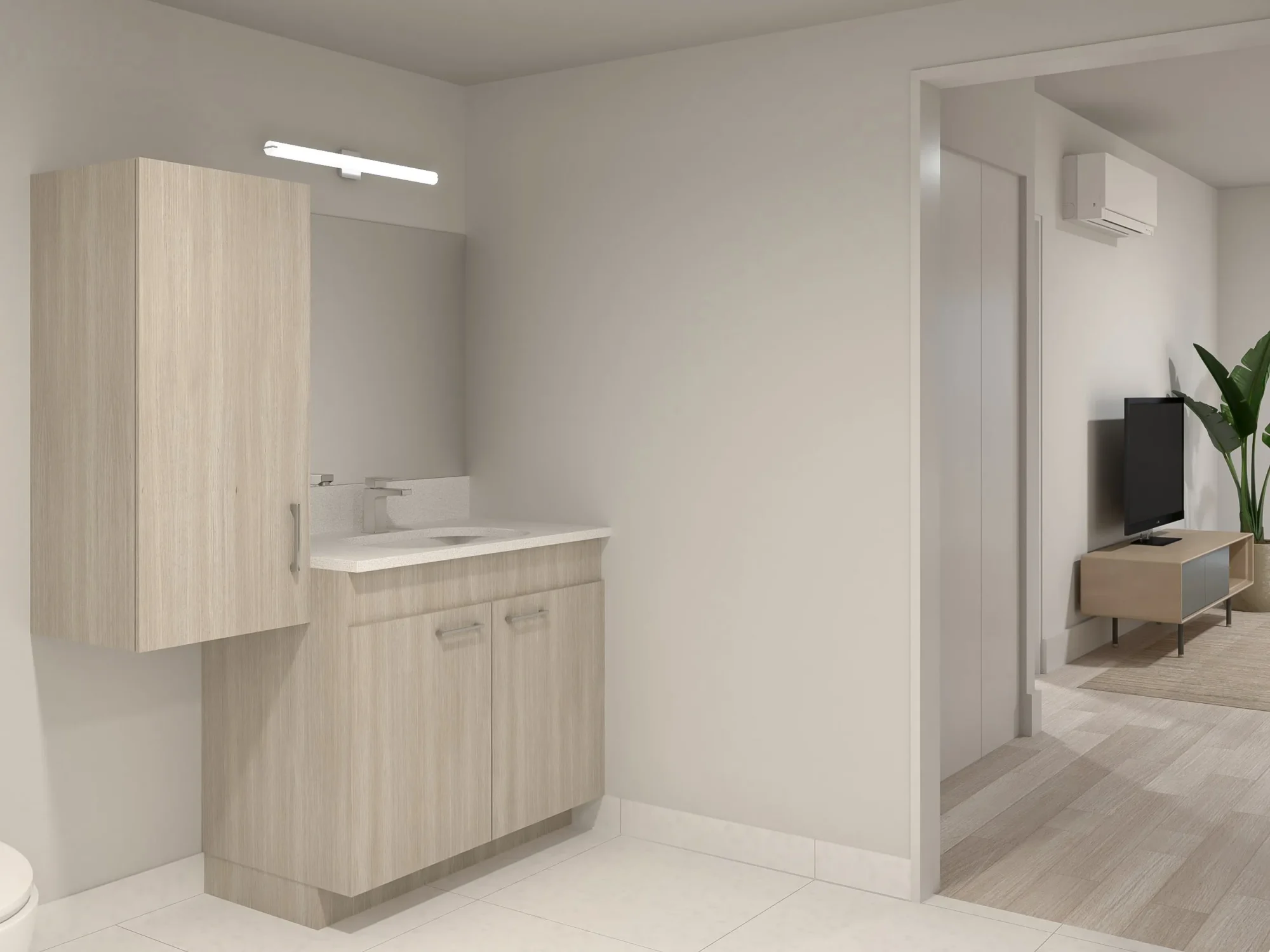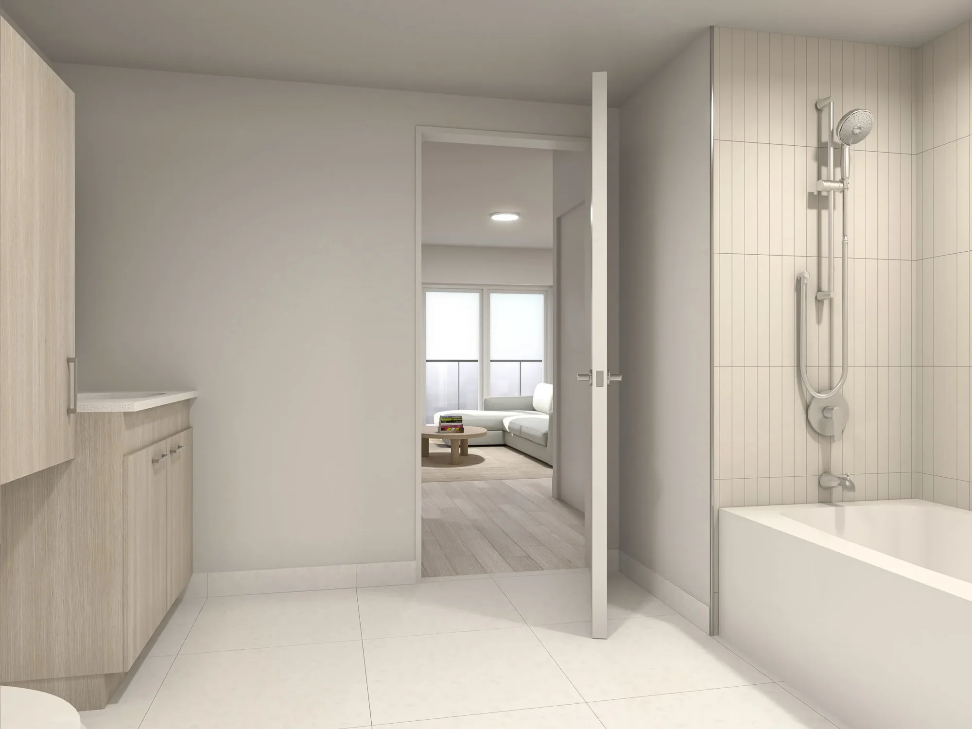 Unit B5 redefines rental luxury with an impressive living area of approximately 998 sq. ft., offering an open and perfectly balanced living space. Available on the 1st, 3rd, and 6th floors, this unit stands out with ceiling heights ranging from 8’-5" to 10’-3", creating an immediate sense of grandeur upon entry. Natural light fills the rooms and flows onto a stunning 84 sq. ft. balcony with glass railings, perfect for enjoying the surrounding views. In terms of finishes, the modern kitchen serves as a true centerpiece, featuring quartz countertops, soft-close cabinetry, and a full set of six brand-new stainless steel appliances. The elegant and functional bathroom includes ceramic flooring and built-in laundry. With energy-efficient individual air conditioning and a high-performance air exchanger, Unit B5 ensures optimal thermal comfort year-round. It’s the perfect address for those seeking a spacious layout without compromising on style. *Electricity, cable, telephone, and internet fees are the responsibility of the tenant.